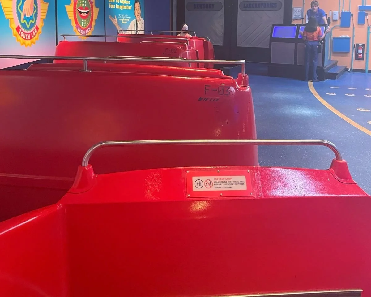 Never underestimate the power of a short line on a air-conditioned ride at Disney World. I’ve seen it listed between 5 and 20 minutes the dozen or so times we’ve been to EPCOT. Regardless of the listed wait time, we never stop walking until we’re on the ride. We’ll embrace whatever madness Figment leads us to if it means we don’t have to wait or sweat. As I mentioned earlier, my girls were totally fine when it broke down for over a minute in a dark corridor. Admittedly, I started to get a little freaked out.